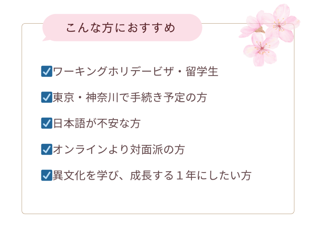 👉日本に到着したばかりで不安な方へ。必要な手続きを全て受けられる安心プランです!